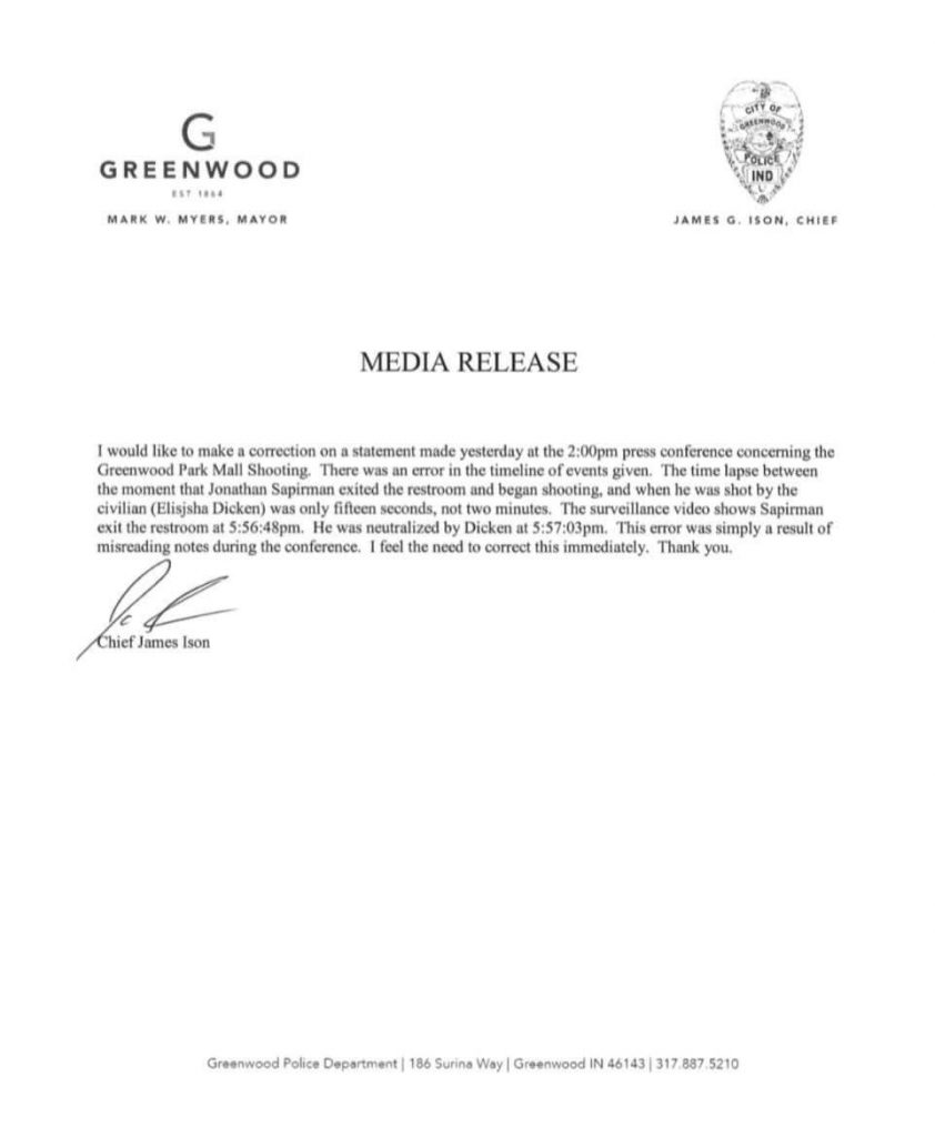 We are seeing intellectual dishonesty stretched to the absolute limits of remotely possible credulity after the Greenwood Mall shooting. People claiming that Eli Dicken can’t possibly be a Good Samaritan if he was in violation of the malls standing policy against armed patrons.