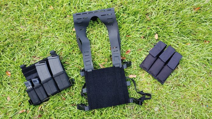 When you say minimalist chest rig, you likely think a few mag pouches, maybe a single admin pouch, and potentially the ability to conceal the kit. That’s pretty standard, right? Well, that’s not the All Missions Rig. From the factory, it’s a big block of loop from hook and loop fame, with a very dynamic set of shoulder panels, and finally a waist strap.
