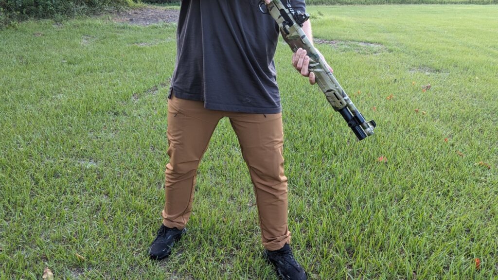 With the Cepheus pants, squatting, climbing, and moving in dynamic ways feel comfortable and natural. I can deliver some serious karate kicks. (If I knew how to do karate kicks.) In reality, doing stuff like loading and unloading a boat, climbing up and down on a truck, or running amok in the great outdoors is comfy and easy. At the range, it’s easy to assume a good kneeling position on the fly. The pants just move with you and provide a crazy amount of comfort.