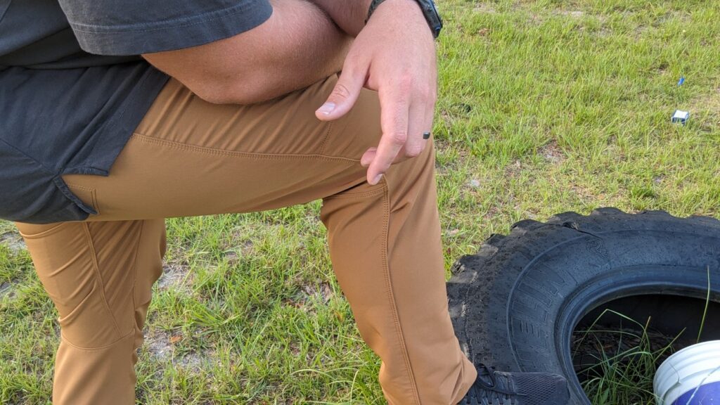 Off the bat, these aren’t dress pants with a tactical edge. They wouldn’t look right with a blazer. They are outdoor pants, first and foremost. These are the kind of pants that are perfect for a hike, kayaking, hunting, or if you take a shooting class and need comfy, durable, and weather-resistant pants.