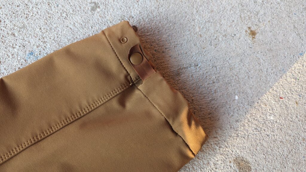 The pants come with shoestring clips on the bottom and a button-and-strap design to blouse them to keep things from getting up there. This helps keep out bugs, sticks, plants, etc. It’s optional but quite handy in the great outdoors.