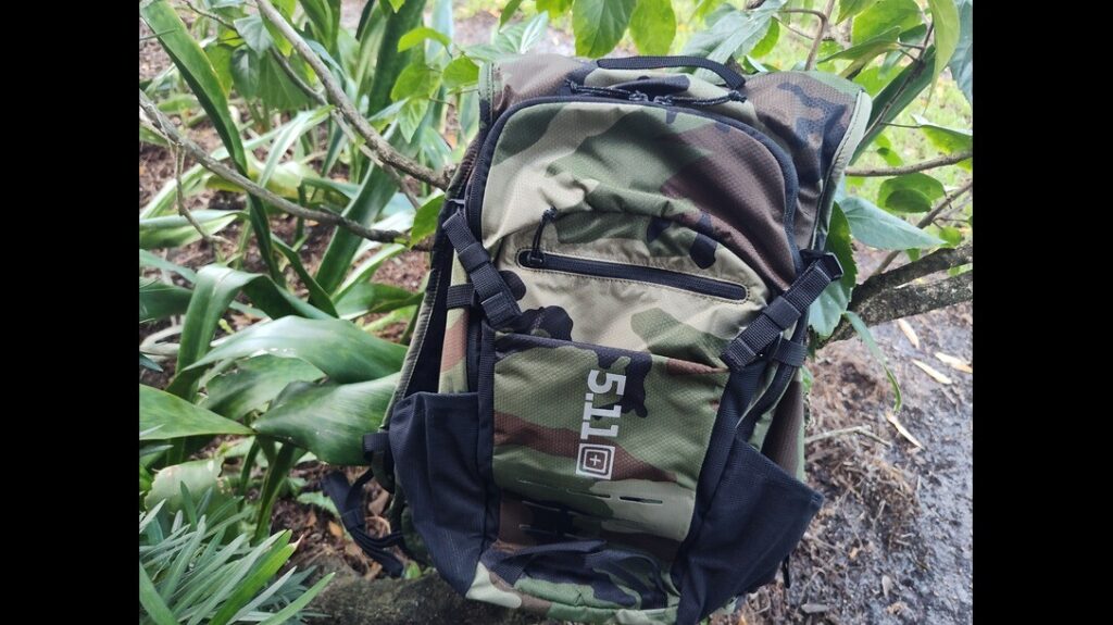 I received the Woodland Camo Cloudstryke from 5.11, and two things immediately struck me. First, the camo pattern was both striking and simplistic at the same time. Second, the overall design of the pack was unlike others that I regularly come across.