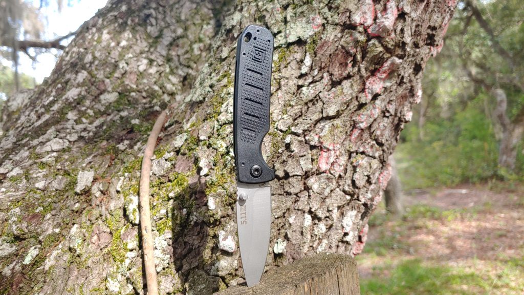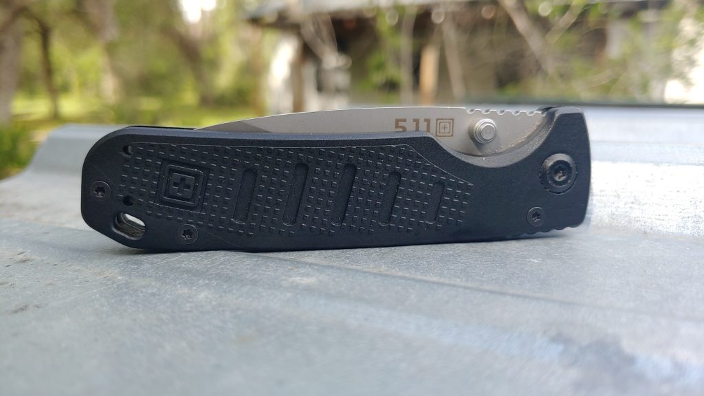 From 5.11 Tactical, the blade is ultra-sharp and has a nice touch. I hate a dull knife, and 5.11 ensures I don’t have one. The grind has a brilliant edge, and the grind is smooth and even. This makes the cutting action smooth and easily slices through your basic EDC tasks. The drop point isn’t fancy but great for all-around work.