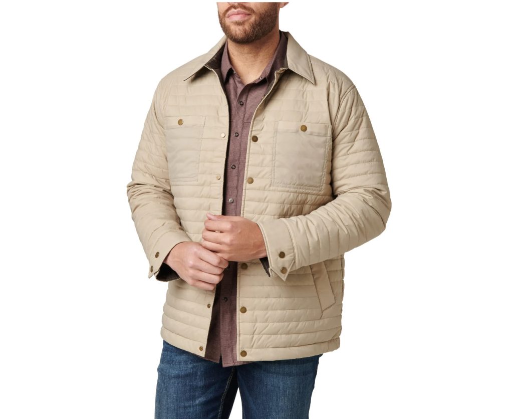 A stylish and versatile option can be found with the Dylan Reversible PrimaLoft Shirt Jacket ($155). This adaptable piece offers quilted comfort and the warmth of 100 grams of PrimaLoft® Gold Insulation in addition to adjustable snap-sleeve cuffs and a fold-down collar with a collar stand to protect against cold breezes. Made to be durable, both inside and out, the outer shell is constructed from 100% Nylon while the lining is made from 100% plain weave polyester. Both sides of this reversible and stylish piece feature a DWR coating that defies precipitation. Hand and chest pockets on the outer side and hand drop pockets on the inner side are secured with snap closures to keep belongings safe.