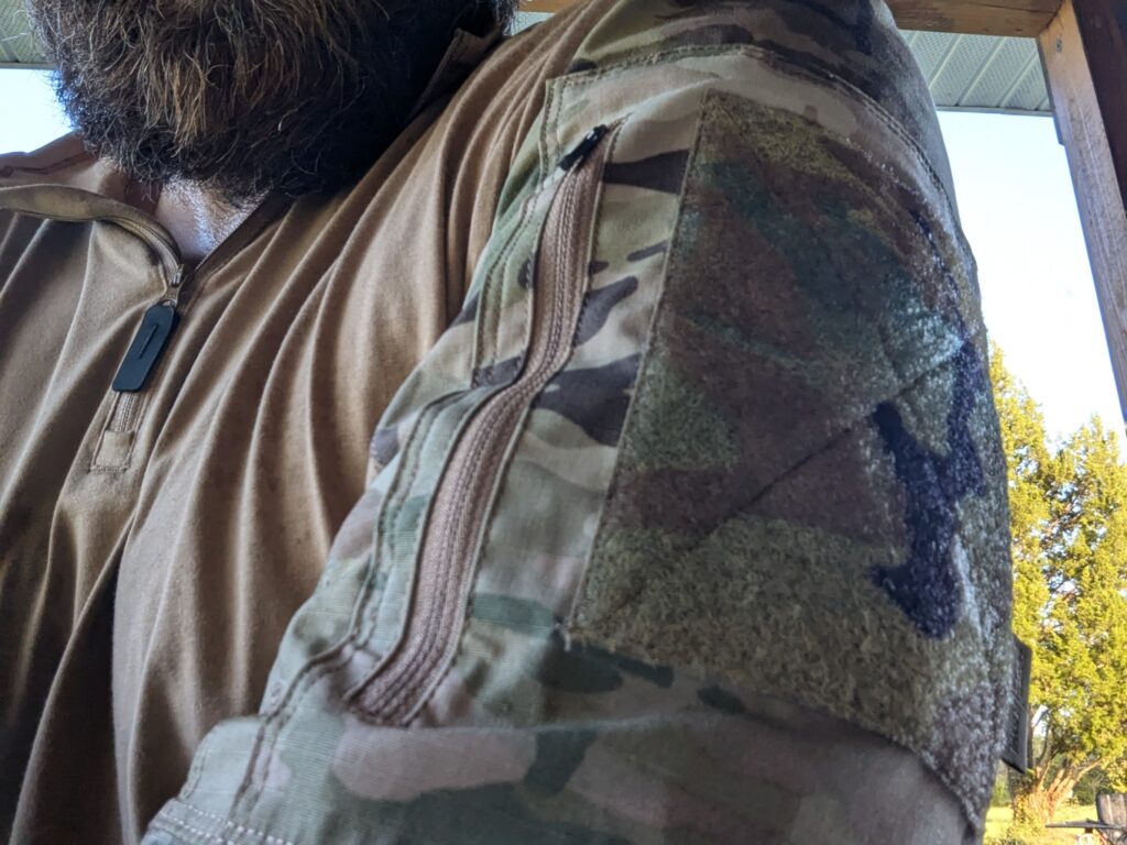 The XTU shirt is super comfy and light around the torso. The seams are flatlock and don’t rub or chafe. In addition, the front has a quarter-zip design to allow for some breathability. The cuffs are fit with hook-and-loop cuffs for tight adjustments, or they can be rolled up and out of the way. The pockets on the sleeves are zippered and face outward for easy access. You can fit all the little goodies you want in the shirt pocket.