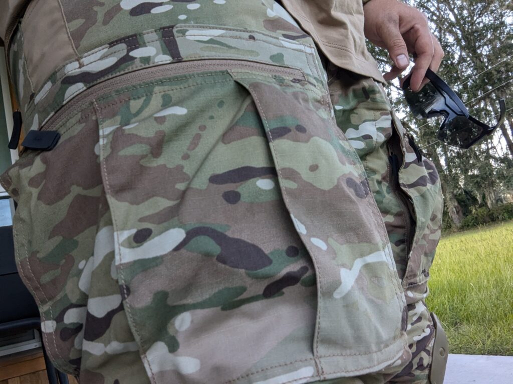 The pants have a ventilation opening on the inside of the leg, which is nice, especially in Florida during the heat of what’s supposed to be Fall. The pants feature cargo pockets on the legs, but they are positioned more to the front than the sides, which makes them more accessible and easier to access. The pockets are zippered, as are the rear pockets. We have N6 nylon Mag Pockets—inside the cargo pockets—for a spare handgun magazine.