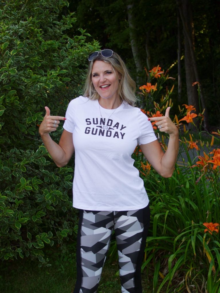 This photo sums up the Sunday Gunday t-shirt; fun and sassy.