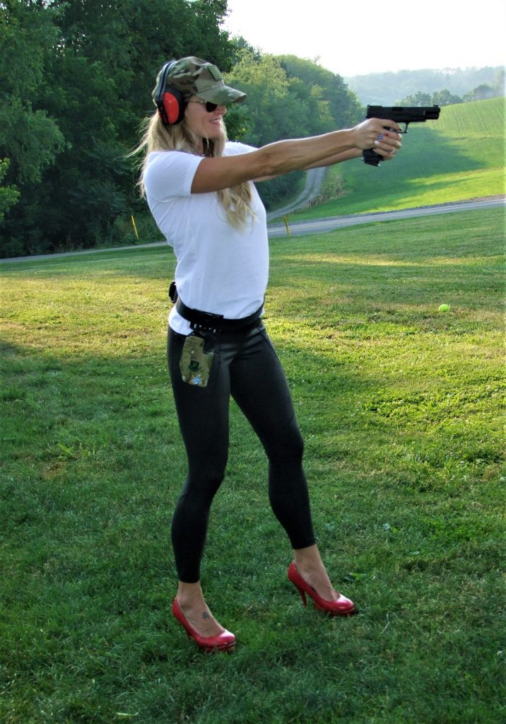 While not ideal for competition, if you get the urge Nicole shows us you can rock red pumps while shooting.