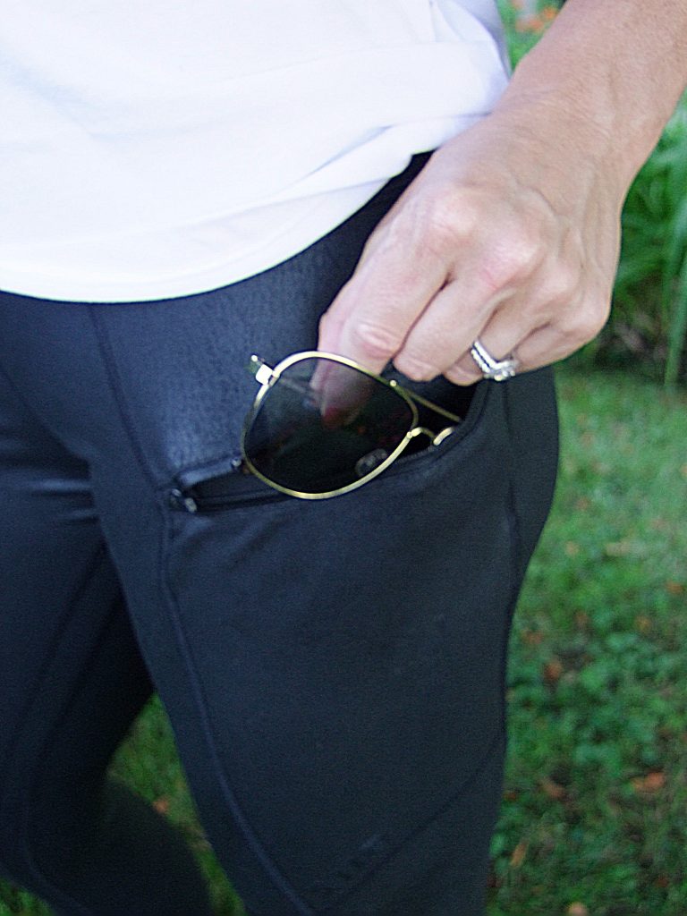 5.11 Tactical designs user friendly features into their pants not seen in yoga pants, pockets. There are slash pockets on each thigh to carry your phone, money, etc. If you prefer a more secure spot for money, there is a hidden pocket in the right side waist band. These pants were comfortable enough Nicole Lynn climbed up on her Jeep, Scarlet and got comfortable. She said they would be ideal for the active lifestyle.