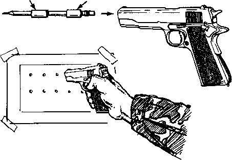 If you want to embrace some 1980s Army training, you’ll need some paper, a pencil, some tape, and your favorite firearm. Draw a small dot on the paper. It should be no larger than a pencil eraser. Wrap a standard number 2 pencil in tape until it fits just right in your barrel. It should enter and exit smoothly and not be too tight. Hang the paper up and aim your gun. You should be nearly point blank on the paper.