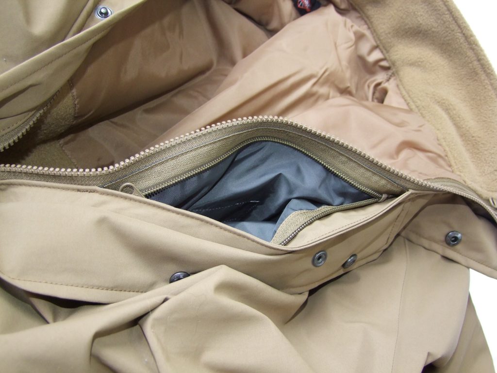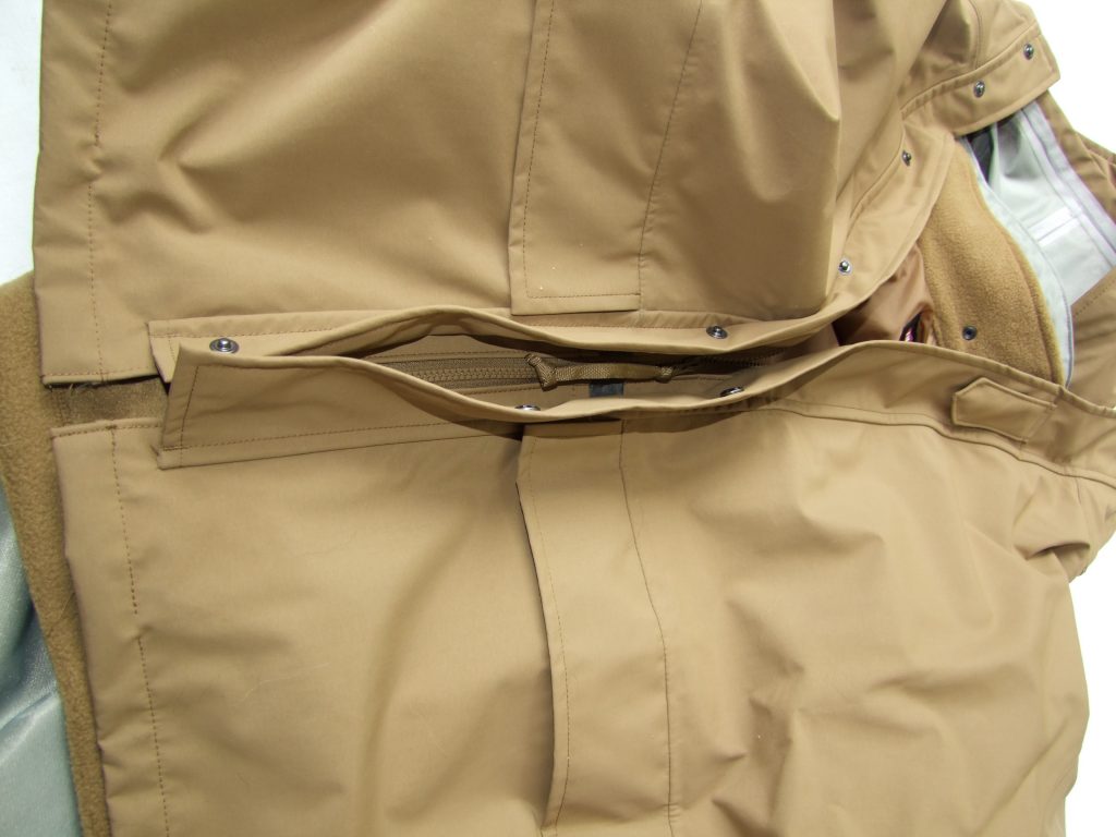 With MSRPs of $159.95 for the parka and $38.95 it seemed like a good deal to me. It would only be a good deal if it was a truly waterproof parka. To test how well it kept things dry, I zipped the liner into the parka and pulled the hood over the head opening. Then I got out the hose and hosed down the ECWS. I soaked the shoulder and neck seams, since they are generally the first to leak. Other than a little overspray getting the collar of the liner a bit wet, the fleece was dry thanks to Bemis sealed seams. That’s a good start. Little did I know I would get to test the system “in the field”.