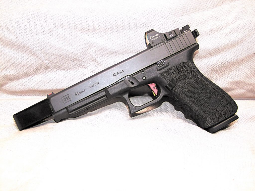 I already owned a G21SF, so I didn’t really need another 45ACP Glock. What intrigued me about the 5” G41 was the MOS system that allows you to mount a mini-red dot (mrds) to the slide. Glock includes four plates that fit most popular mini red dots. It was good to see one of the plates fit a Burris Fast-Fire that I have used for a good many years. Adding a mrds to the G41 would allow me to use this pistol for Limited Class, Limited 10 and Carry Optics in USPSA as well as shoot CDP and Carry Optics in IDPA. One pistol with many uses, sounded like sound fiscal logic to me.