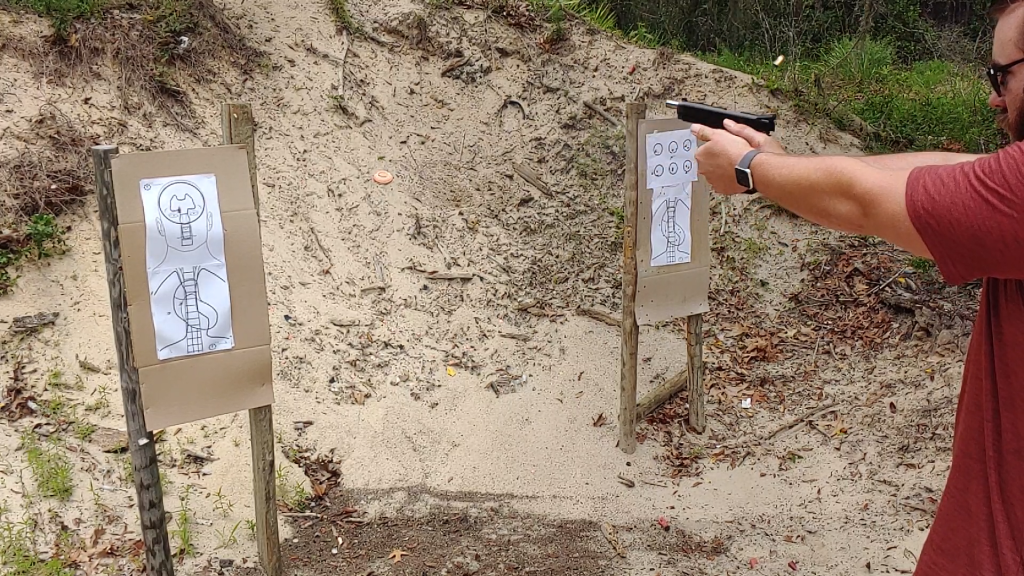 The sights are also very precise and eye-catching. At 50 yards, the front sight makes it easy to see your target while aiming at it. The smooth trigger and match-grade barrel help the system come together to form a very precise weapon. The accuracy can’t be ignored, and if you do your part, you’ll hit those targets at 50 yards. My smallest target was a ten-inch rifle gong, and I hit way more than I missed.