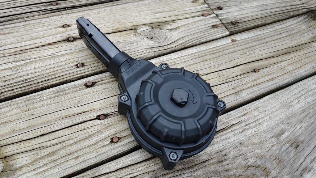 Drum designs have gotten better, which I primarily thank Magpul for. Most have a similar design to this model and incorporate a built-in winding device. This winding device relieves pressure from the follower and allows the user to load the drum without difficulty. When released, the pressure is reapplied, and it feeds your firearm.