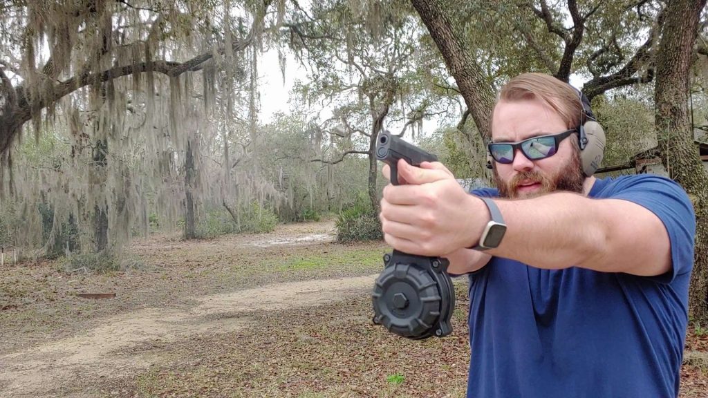 The P365 Drum changes the way your weapon handles a good bit. Not only does it increase the weight substantially, but it changes the recoil impulse. It feels like muzzle rise or muzzle flip is increased. As the gun recoils and comes upward, the weight feels like it’s on a pendulum and a full drum keeps pushing forward, causing the weapon to flip upwards beyond the weapon’s normal recoil. It’s weird for sure and lessens as the magazine empties and gets lighter.