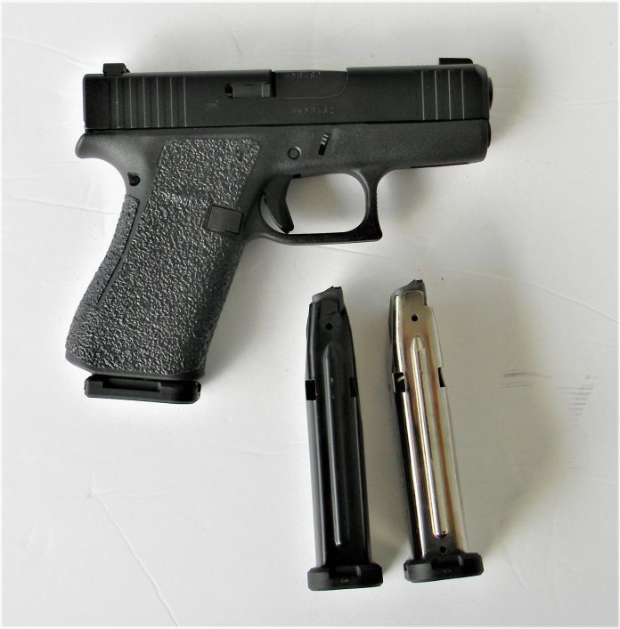 The Glock 43 was a long waited slimline 9mm, Glock’s first. Glock more recently introduced the Glock 43X and Glock 48. Each features ten round magazines. This is possible as the 43X has a longer grip frame than the Glock 43. These are typical Glock magazines in design with a polymer shield covering a steel inner structure. The Glock 43 is a very reliable handgun. On that basis I am reluctant to modify the Glock or any other reliable handgun with aftermarket parts.