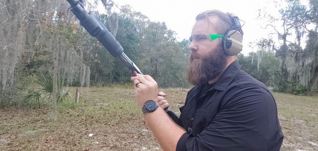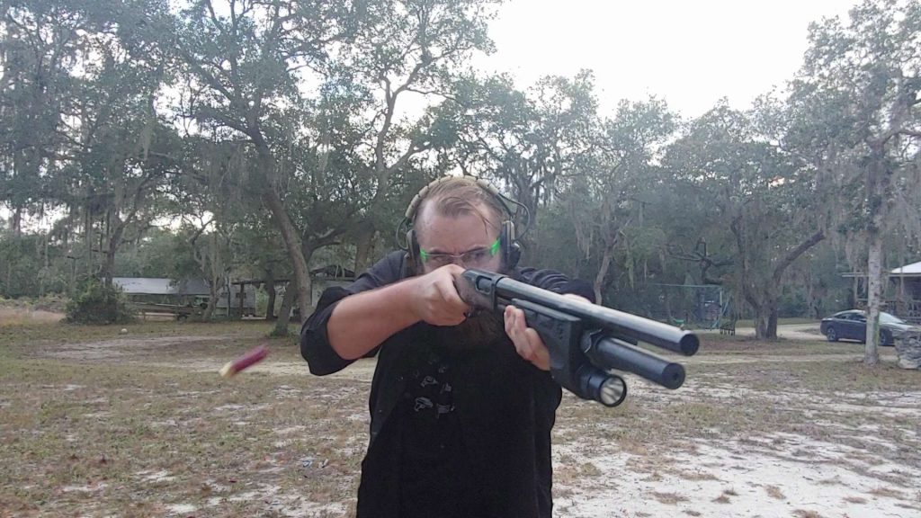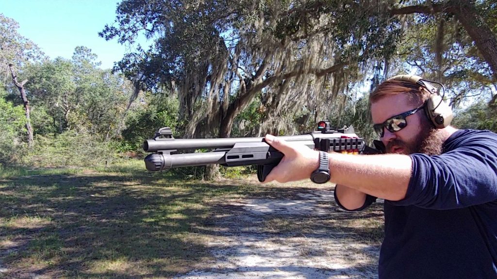 At the beep of the timer, you’ll shoot both targets with one round of buckshot. You’ll then speed reload two rounds into the shotgun’s tube.