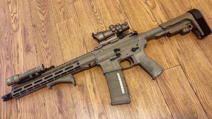 My premise starts from the assumption that the “squad of boogaloo bois,” or whatever moniker we decide on for the gram, is running MK18-like AR pistol types. In whatever hypothetical emergency that has arisen, maybe the aliens really did get out of Area 51 in September and they’re pissed, the go guns are AR pistols in a ~10.5″ configuration running red dot sights and lights.