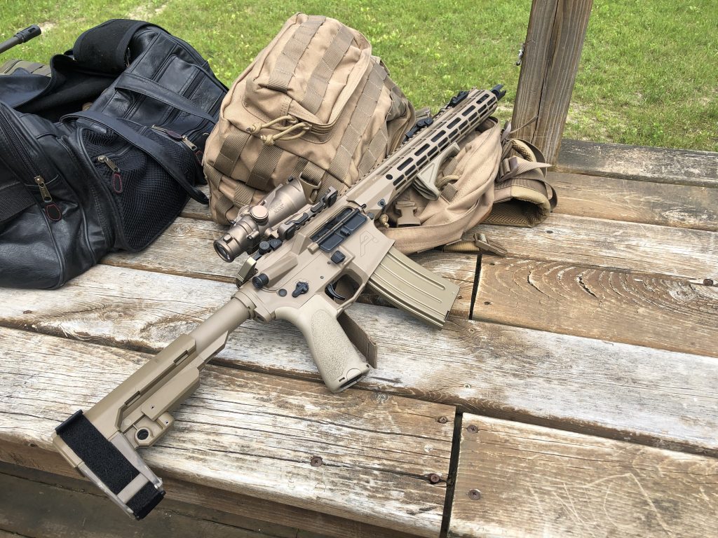 The buffer tube, receiver end cap, and castle nut were all done up in flat dark earth by my friends over at BG Defense. Pulled from their in stock production. Capping it off on the back is an SBA3 brace from SB Tactical and on the front was a spare AAC 51T Breakout I had in a parts box.