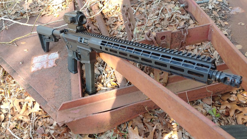 As a blowback 9mm AR, there is some recoil to be expected. Not an absurd amount, and from a 16-inch barrel, it’s less than a 5.56 in a comparable platform. At the end of my barrel is a VG6 Gamma 9mm that also takes some bite out of the recoil. The same goes for muzzle rise.
