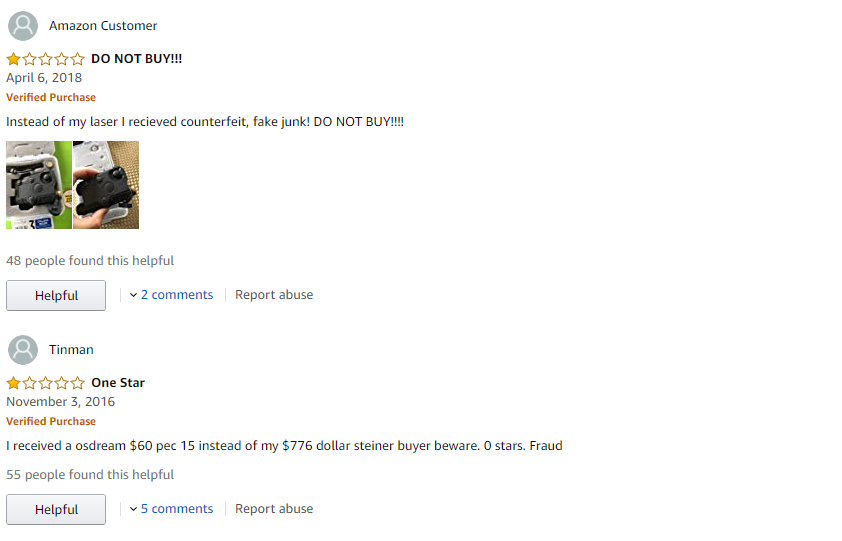 Amazon is a little better, but the problem still persists with many reviews pointing out that their item is a fake. Some of these fakes are done extremely well in terms of color, controls, markings, and other small details.