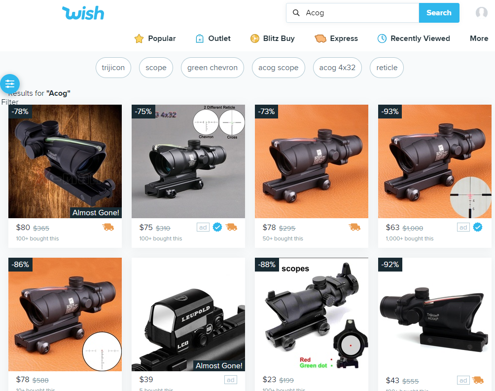 The best advice I can give is to use common sense. If it’s a deal too good to be true then it likely is. People don’t sell Acogs for 120 bucks, and PEQ 15s don’t have white lights. Buy from trusted retailers and understand the deal of a life time rarely is.