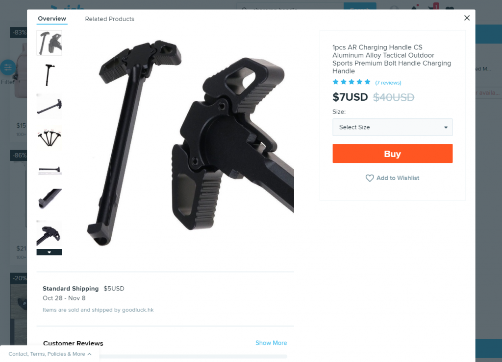 eBay is seller to seller and full of people trying to pass off low-end junk for high-end parts. This isn’t just scopes, stocks, and sights, but parts as small as charging handles are counterfeited. China was even importing 80 lower Receivers according to a 2013 Article from the Firearms Blog.