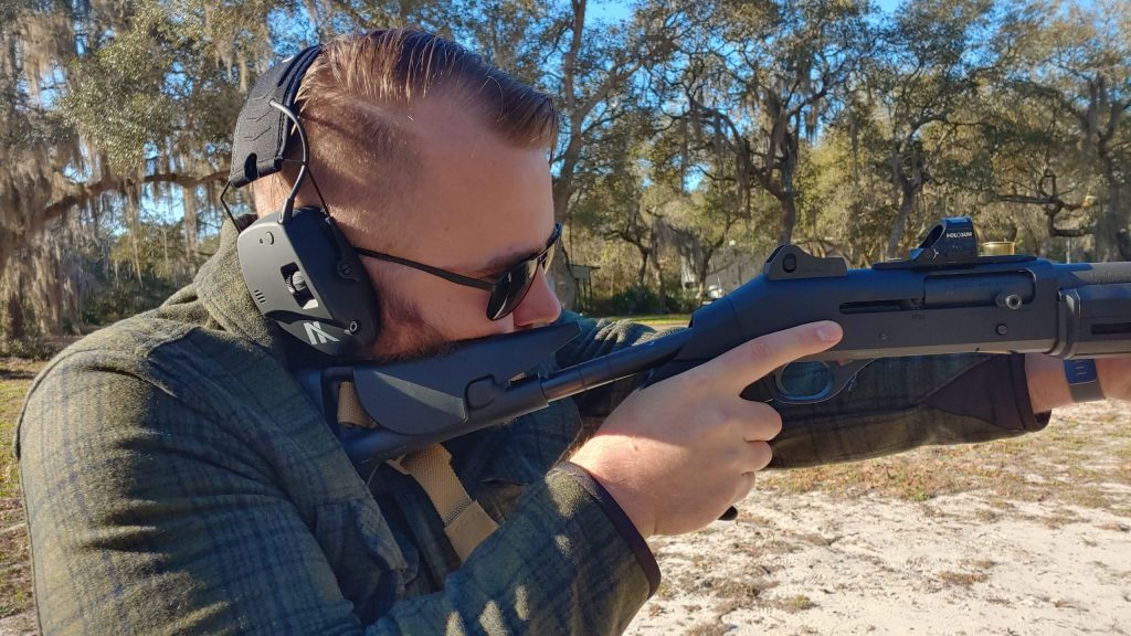 For getting a rock-solid cheek weld, ear muffs will always be in second place compared to earplugs. It’s the nature of the best. However, for most rifles and shotguns, the Axil Trackr Blu headphones will work without issue. Carbine stocks and tactical shotguns are often slim enough to work without problem.