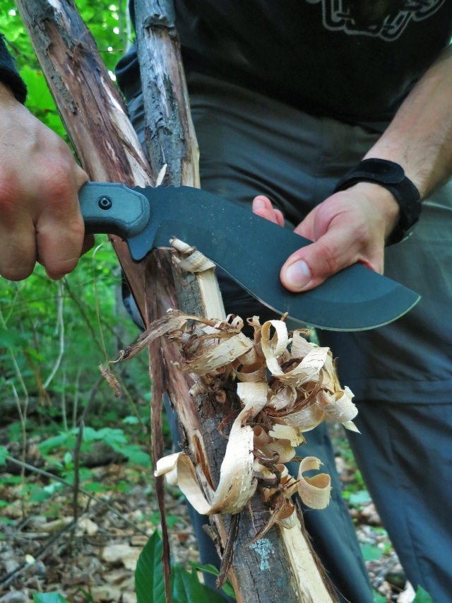I picked up the knife at a knife convention in Georgia and took it into the backwoods the next morning. It felt right at home chopping through hard oak, dogwood, maple, and poplar. While the hardwoods of the Southeast typically suit a hatchet or axe, the knife’s compact size and inwardly curved blade provided a hatchet-like feel with added versatility.