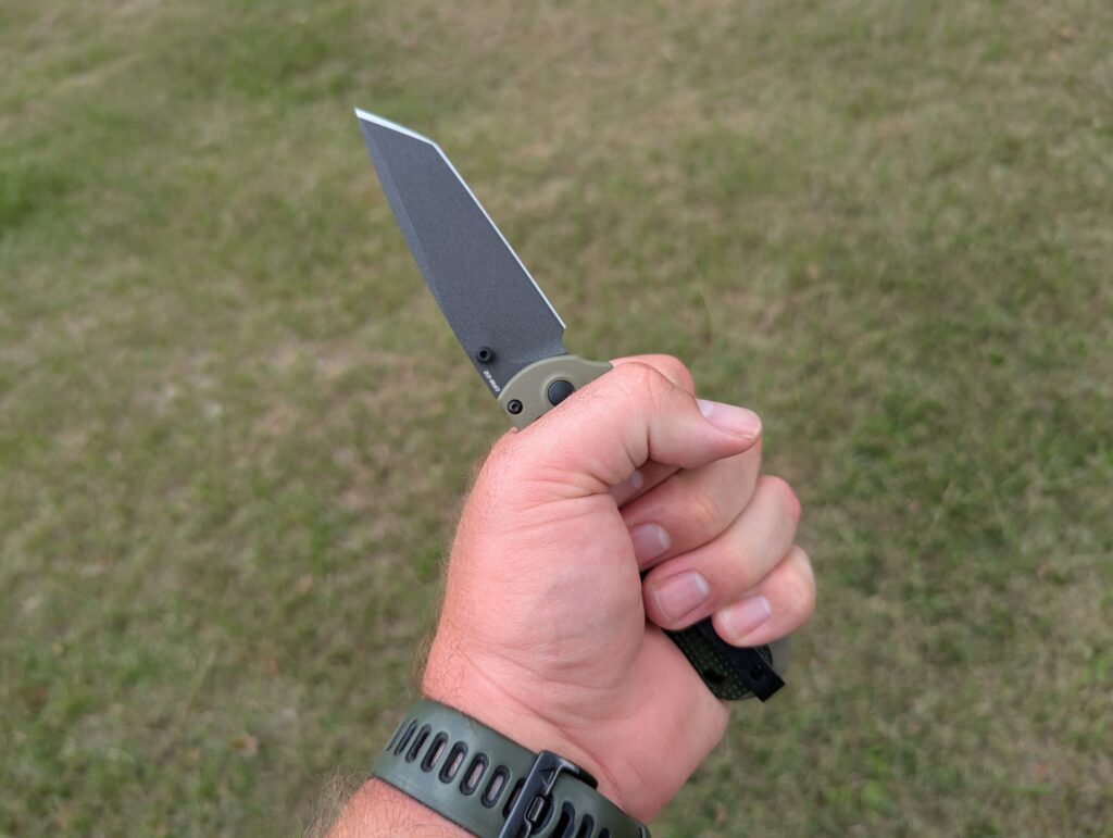 This creates an aggressive grip texture for a true nonslip grip. It’s currently summer, and it’s 98 degrees outside. I’m covered in sweat after about a minute of doing anything outside. This includes my hands, which will be dripping sweat if I do anything related to tools—including knives. The Redoubt sticks to your hand and won’t slip or slide when dealing with sweat.