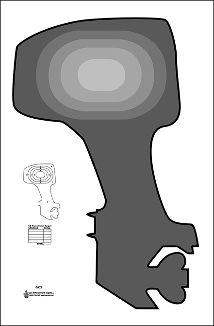 The FBI doesn’t adopt a realistic target in terms of how it looks. The Q, often known as the Coke bottle target, does create a real challenge for shot placement. The Q is vaguely person-shaped but greatly reduced to represent the vitals of a human threat. The target doesn’t post hands or arms to make the target wider. Modern versions of the Q have a chest and head target, and others have reduced the Coke bottle to just the chest and head.
