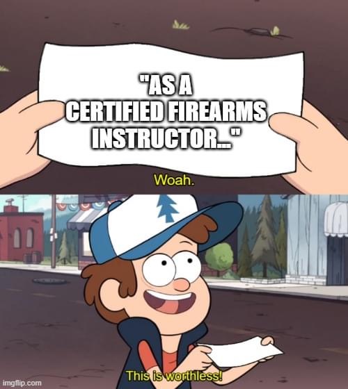 This gentleman is relying on not one, but two near valueless certificates to credential themselves. The second being retirement age police officer. The comment is barely literate, which could be forgivable if the information was objectively worth the data it took to make the comment, but it isn’t. It is a disaster of misinformation and actively dangerous practices.