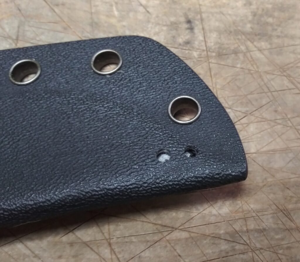 One nice feature of the sheath is the weep holes they’ve put at the tip. This allows moisture to escape from the sheath rather than be kept on the blade.