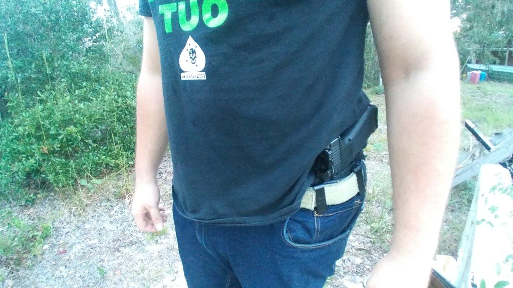 Concealment wise my go-to clothes is a T-shirt and jeans, and that’s all I need to conceal the big, optic equipped, Glock 17. As a side note, it is not compatible with the 80% lower Glock from Polymer 80.
