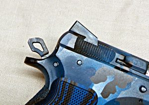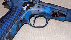 With blue and black grips, the all black pistol needed a new look. Thanks to Duracoat (duracoatfirearmsfinishes.com), the CZ would soon sport a blue and black camo finish. I know this will not set well with diehard traditionalists, but I wanted my pistol to be unique. This finish would do that and protect it from the elements as well.