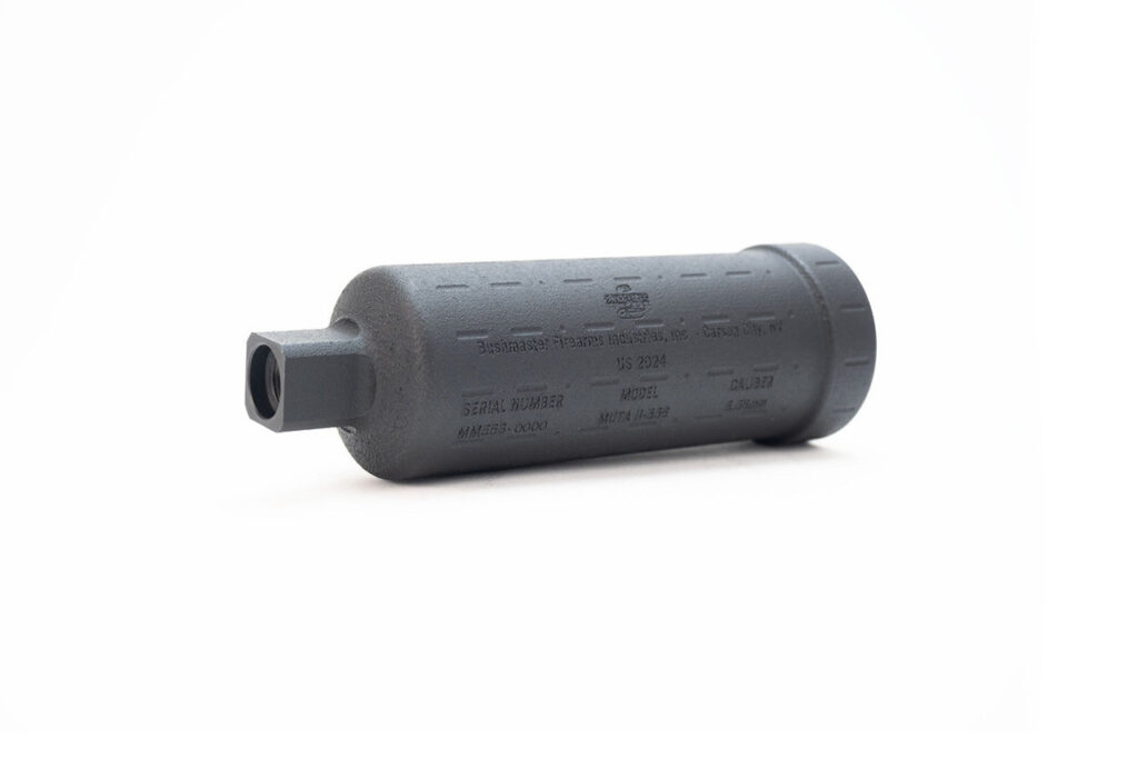 Bushmaster is touting the MUTA II as being lighter, quieter, and more compact than the original Bushmaster MUTA suppressor. It’s just 5.65 inches long and weighs only 12.25 ounces. It’s the lightest and shortest 5.56 dedicated suppressor that Bushmaster has made so far. The MUTA II BM556 reduces the sound signature on 5.56 NATO rounds by a 14.0% reduction at the left ear, a 15.4% reduction at the muzzle, and a 15.9% reduction at the right ear.