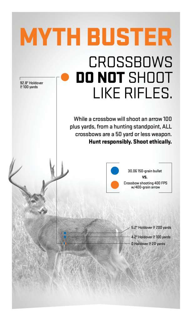 Fact: A crossbow shooting a 400-grain arrow at 400 fps will drop 92.8 inches to hit a target at 100 yards. That is a significant arc, from what would be the fastest bow around.