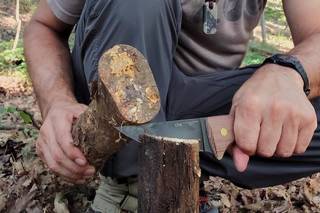 With a dry birch stick in hand, I grabbed the Case Sasquatch Skinner and got to feathering. Oh boy, this blade’s edge geometry blew me away! I whipped up some curls that were so fine they practically begged for a spark. And boy did they get it! My trusty Uberleben Ferro and the edge of the Sasquatch knife made them burst into flames faster than you can say “bonfire.” Who knew that hidden gem of a 90-degree angle would turn out to be an MVP?