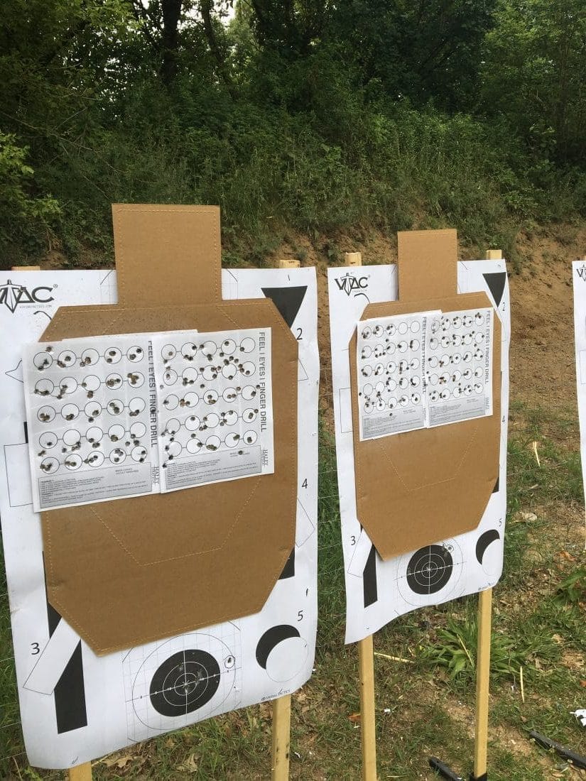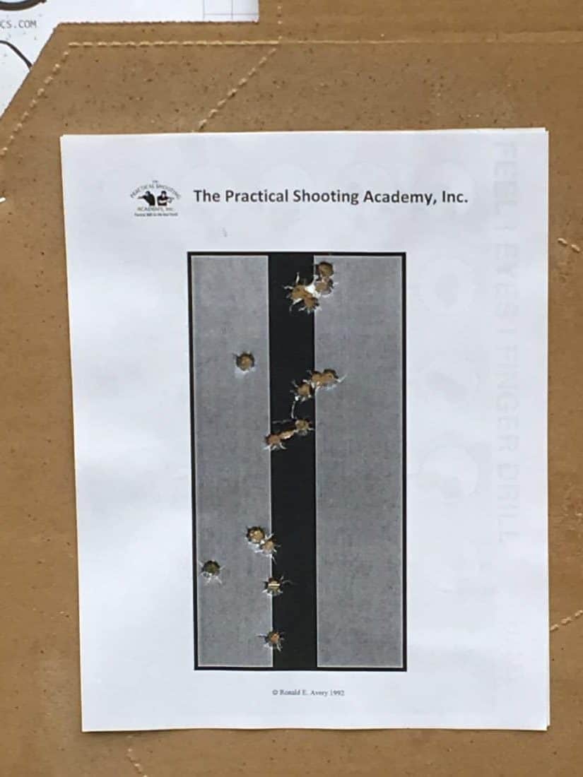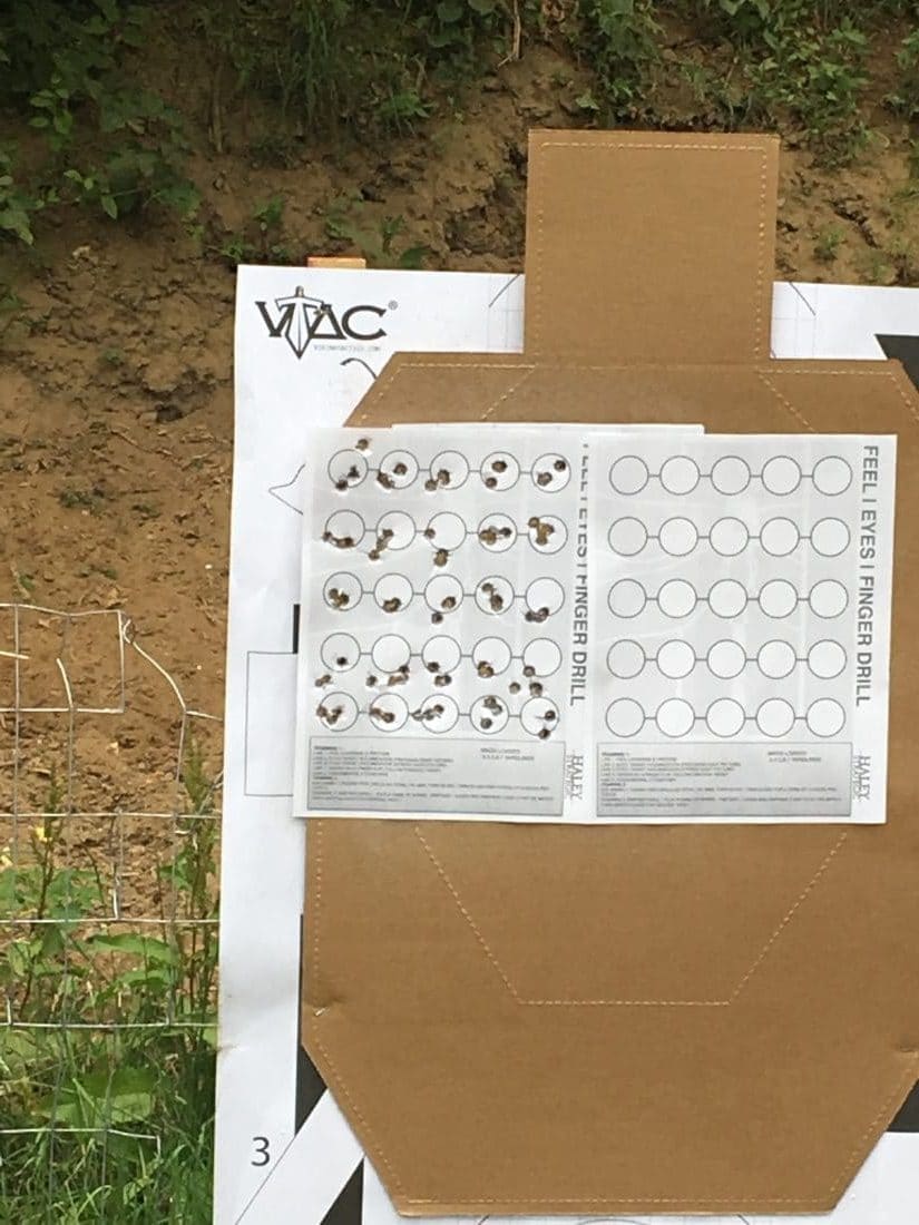 It’s difficult and counter intuitive but after a few attempts the top group was my result. Relying entirely on feel, body mechanics, and proper positioning to keep the pistol on target and rounds consistently grouped was new. But hearkening back to my basic rifle marksmanship from 2007 this drill is identical in fundamental consistency.