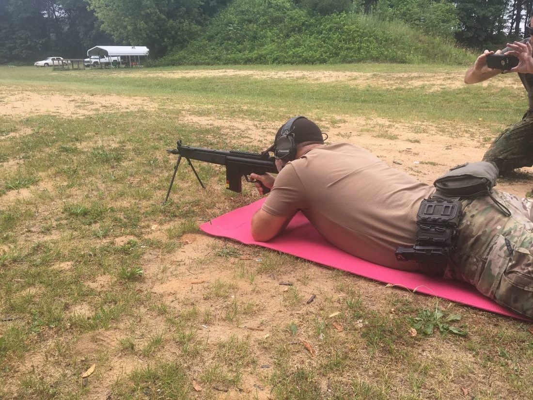 Day 2 started with automatic gunfire. 10:00 am had us on the 100 meter line hammering bursts of 7.62×51, 300 Blackout, 10mm, 9mm, and .45 ACP into steel targets and grinning ear to ear.
