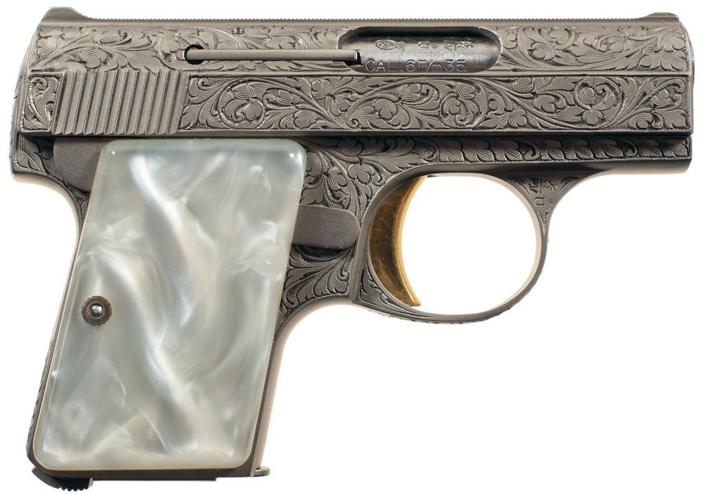 The Baby Browning bears Browning’s name but was designed by Dieudonné Saive. Admittedly the pistol was more or less based on the massively successful Model 1905 Vest Pocket pistol. The Baby Browning trimmed about a quarter of the weight off of the Model 1905. Almost a half inch of length was trimmed, and the gun even had a slightly longer barrel.