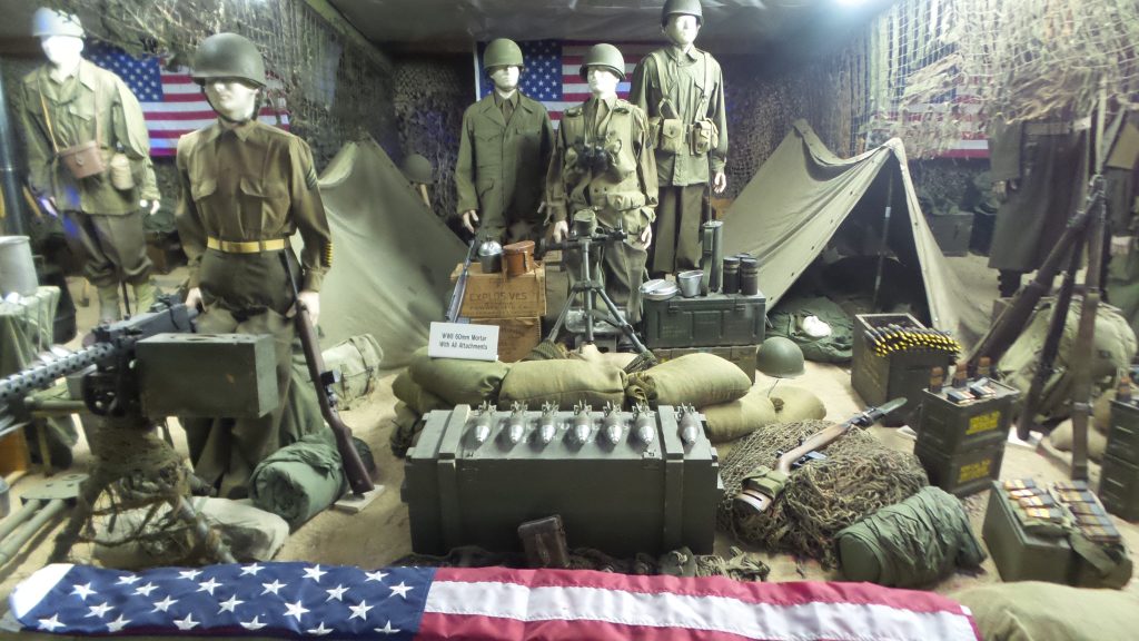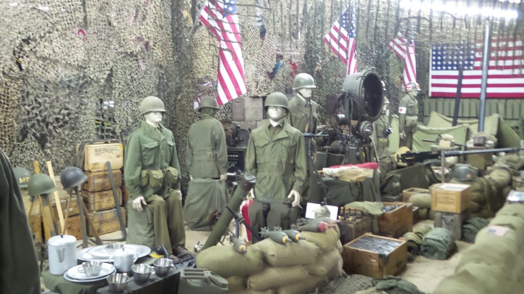 My tour started with Omaha/Utah Beach and the invasion of Fortress Europe on D+1. These dioramas depicted a command bunker, a medic area with supplies, signal lights, weapons, flares, kitchens; everything that was used on the invasion save for a landing craft or Sherman tank. You could spend a couple of hours just looking at all of the small items here and in every area and still not see it all.