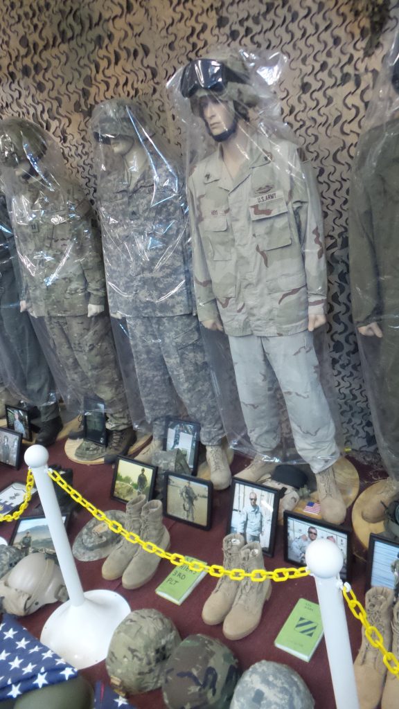 From there we went into the area commemorating our time in SE Asia from Desert Storm to OIF/OEF and ongoing operations in the GWOT. What is amazing about this area are the artifacts including one of Saddam Hussein’s scrapbooks. The troops from the 4th ID operated with special operation forces searching for Hussein and they donated it to the Colorado Springs Military Museum. Many of the uniforms of the Iraqi Republican Guard come complete with bullet holes and stains. To say the artifacts in this room are breath taking is an understatement.