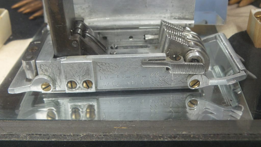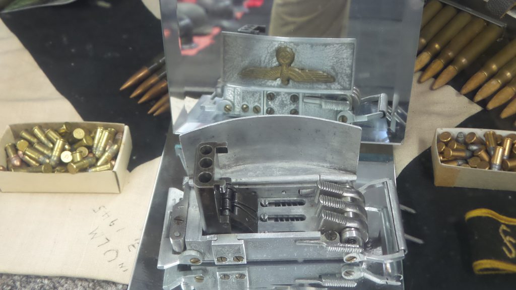 We finished the tour the most unique item here or anywhere in the world. This is an engraved/inlayed serial numbered belt buckle (#1) of Hitler’s personal body guards. What makes the buckle unique is that it is a three barrel 22short pistol. This last ditch pistol gave the guard three up close and personal single shots to protect Hitler. Like all other German firearms the workmanship is amazing and precise.