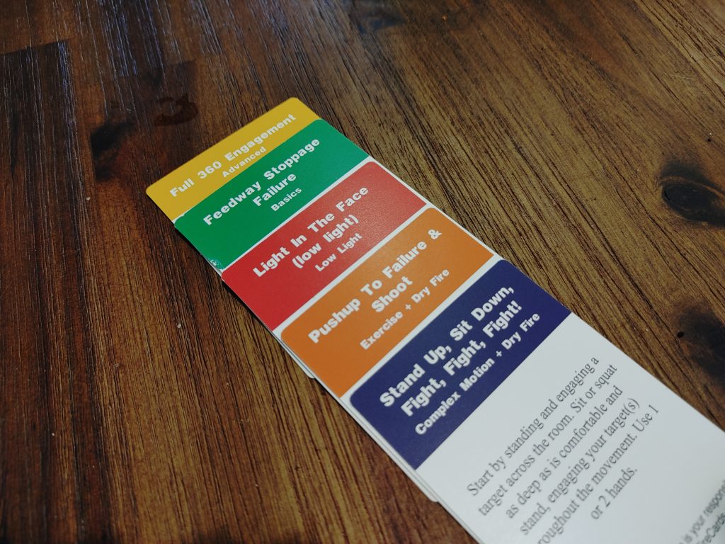 The Dry Fire Training cards are a mix-up of several different types of drills, each with a corresponding color. These cards feature a huge mix of skills. They cover some stuff I never thought of, like low-light dry fire and using your weapon light for dry fire.