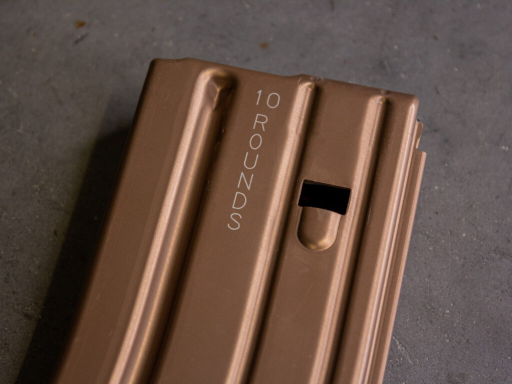 The new mags are made from the ground up as 10-round mags and are made for use with both 5.56mm and .300 Blackout rounds. They use a 30-round magazine profile, but they aren’t just modified 30-rounders with a block in them. They start with DURAMAG Speed bodies made from 6061-T6 aluminum and have a type-III hard-coat anodized finish.