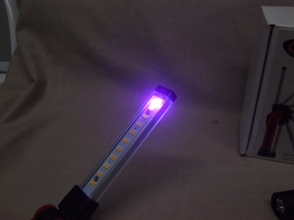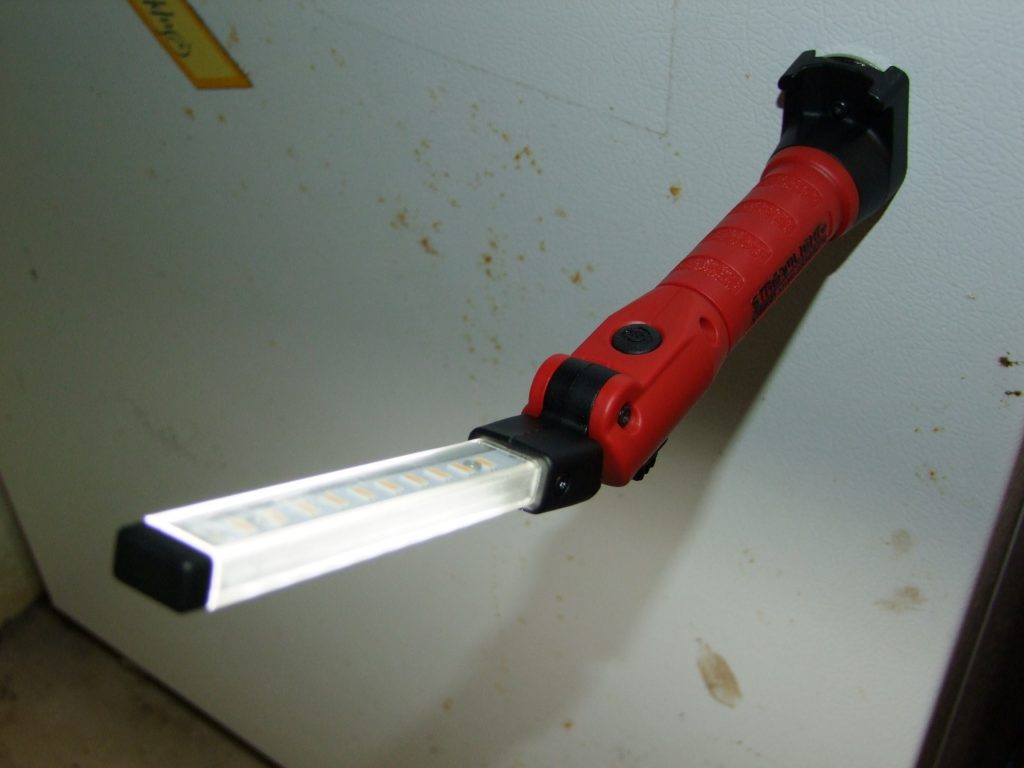 Lastly, we are going to look at a light that if need be will light up a room; the Strion Switchblade Rechargeable Light Bar. The Switchblade not only puts out 500 lumens, but you can use it with cool white LEDs or CRI Cool-Rite LEDs for better color differentiation. This is important if you are working on wiring and you cannot afford to connect the wrong wires. There is also a “blue” leak detection LED which highlights various fumes. This light is also ideal for more mundane uses like climbing dark basement steps. No you cannot run both sides of the light bar at once.