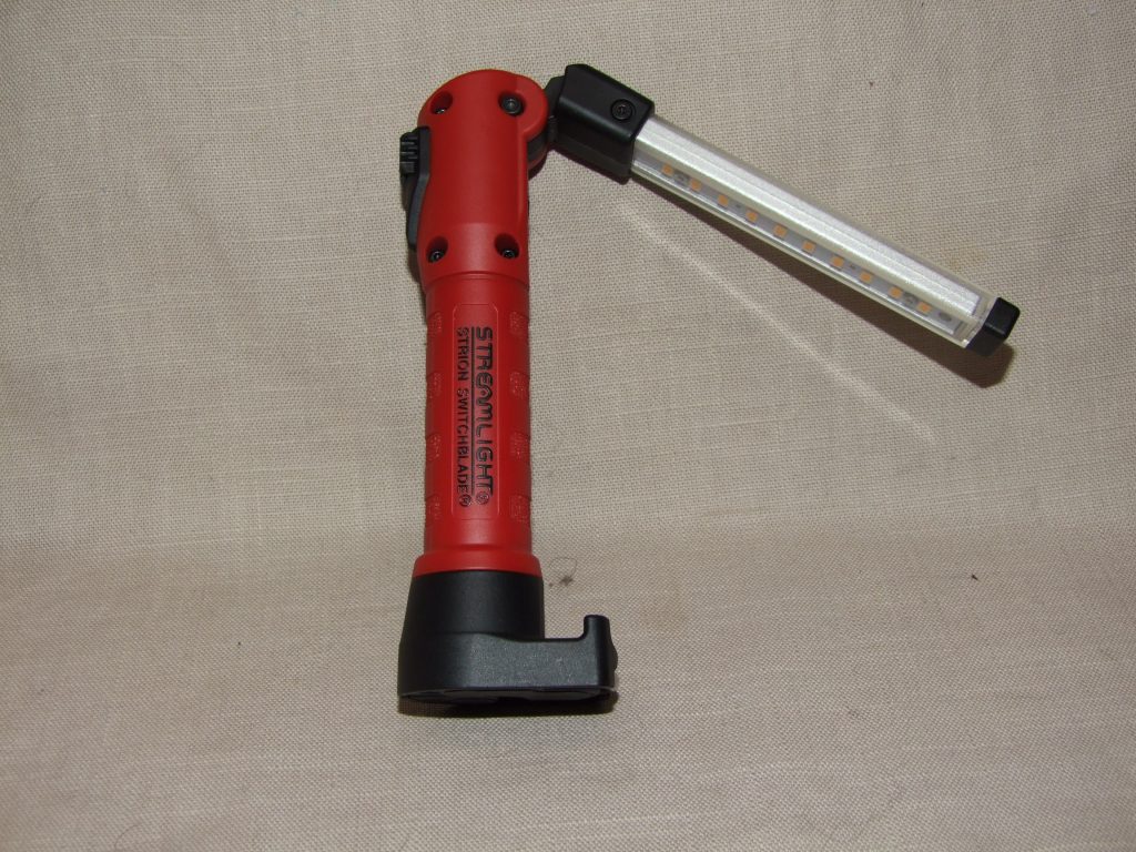 Thanks to its magnetic base, you can clamp the Switchblade to a fender if you are working on a car the underside of a sink or any other magnetic item. It also is designed to stand upright and not to roll if you lay it on an angled surface. The base is unique in that you can rotate it; because this is also the battery cover remember to turn it until it locks again when you are done. If that is not enough, there is a folding hook to hang it from. This is light you should have in your vehicle, tool box and at home. You never know when you need a flood light.