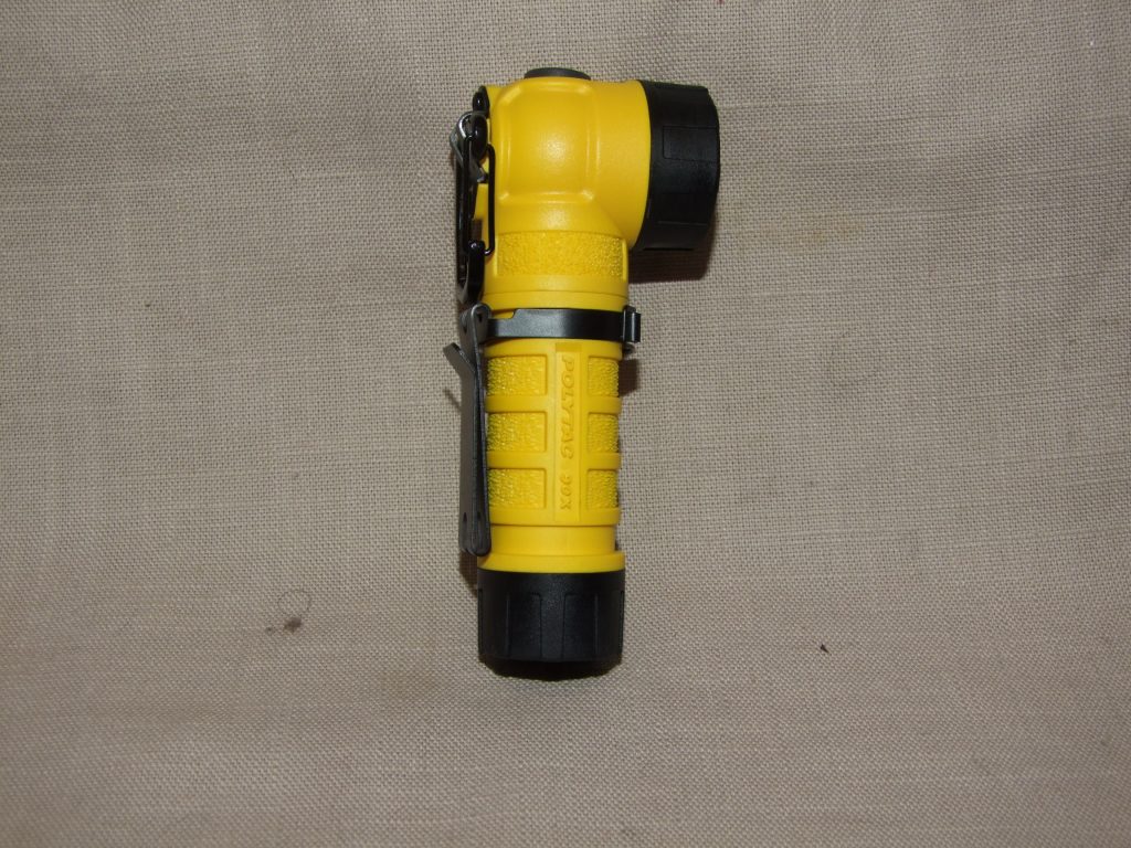 The next light will bring back memories for folks who were in the service when right angle D-cell lights were standard issue. That is where the similarity ends. The 90X USB Polytac Right Angle is the size of the lamp assembly of the old GI lights and puts out more lumens on low (85 for up to 19 hours) than ours ever did. On High 500 lumens your run time is 3.75 hours with the supplied SL-B26 battery or 2.5 on 2 CR123As.