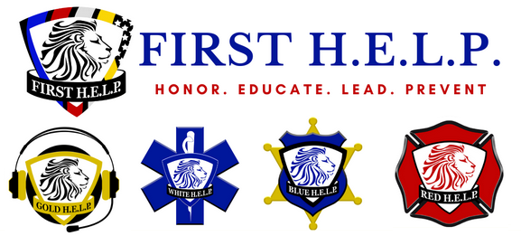 First H.E.L.P. is the evolution of Blue H.E.L.P. (Honor- Educate- Lead- Prevent) which was initially formed in 2016 and now includes Red (Fire), White (EMS), and Gold (Emergency/ 911 Dispatchers) and the original Blue (LE & Corrections). Collectively this gives First H.E.L.P. scope over the entirety of First Responder/ Public Safety Professionals in Law Enforcement/ Corrections, Fire, EMS, and 911/Emergency Services Dispatchers.